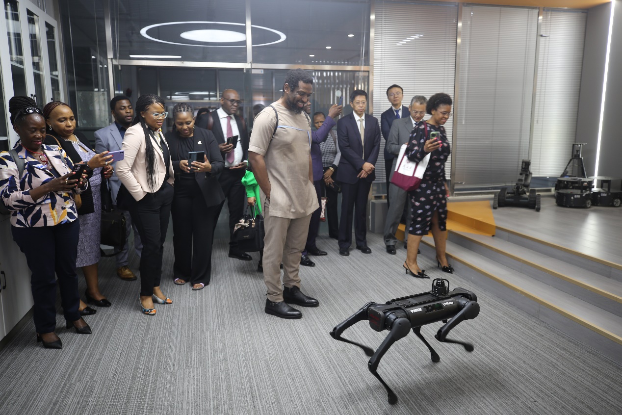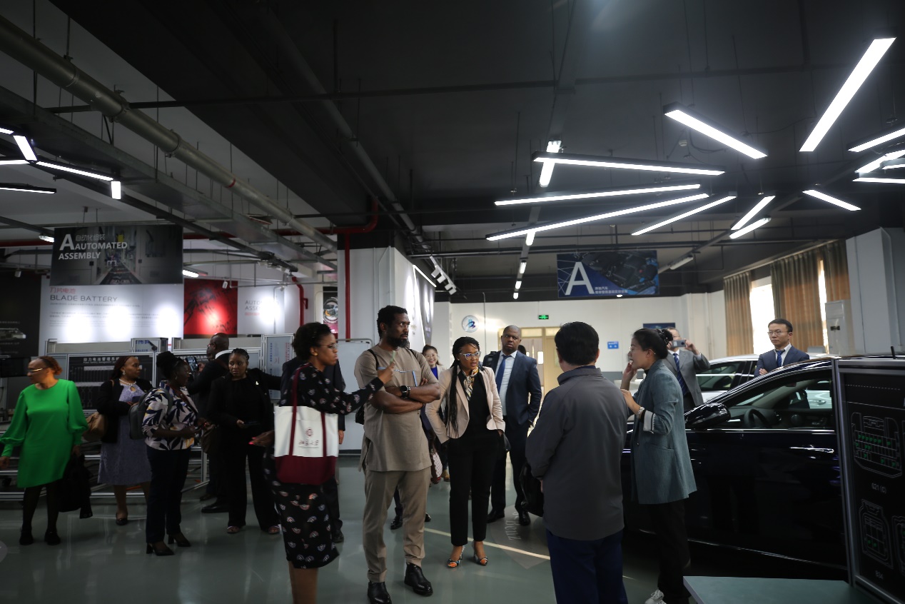 马纳梅拉副部长一行在高喜军书记的陪同下依次参观了中法能效管理应用人才培养与研究中心、汽车维修实训中心、机器人实训中心以及智慧工地实训中心,对我校理实一体化的教学模式和优质的实训条件给予高度赞赏和充分肯定。