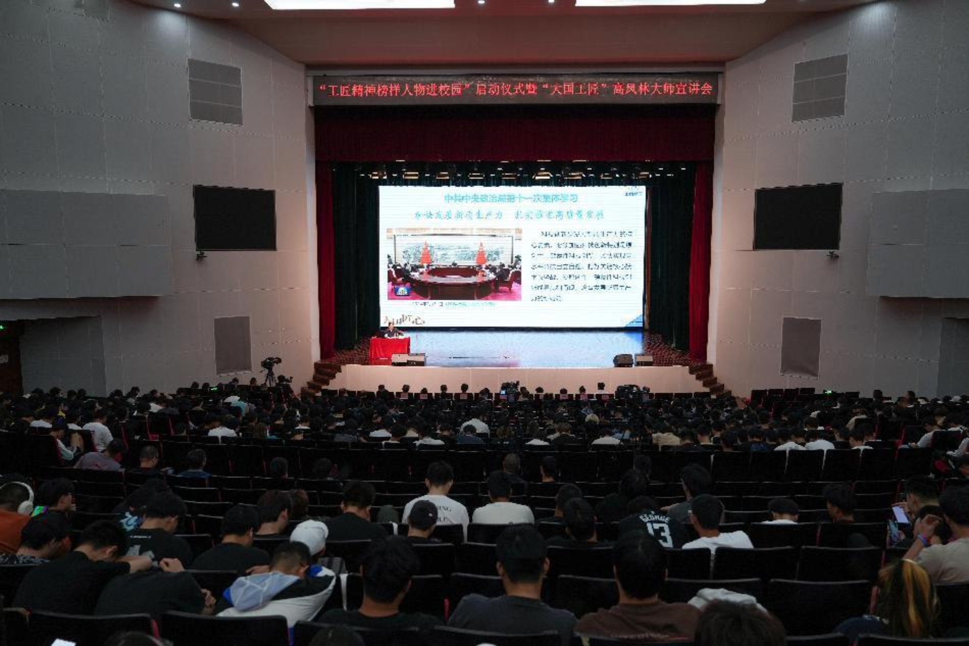 随后,“工匠精神榜样人物进校园”首场活动正式拉开帷幕。“大国工匠”代表高凤林大师以《践行党的优良传统极致追求工匠精神》为主题进行了宣讲。他结合自身工作实际和学习心得体会,从“学习贯彻习近平新时代中国特色社会主义思想主题教育心得体会”、“践行工匠精神”、“不忘初心 继续前进”三个方面深刻而全面地阐述了工匠精神的内涵与价值,让劳模工匠的先进事迹和崇高精神走进校园,激励广大师生追求卓越、勇攀高峰。