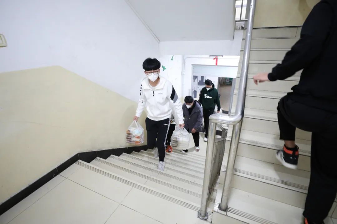 尽管不能彼此拥抱,但那些不分昼夜奔走于宿舍、食堂的身影始终伴随在同学们身边。他们凌晨3点起身为同学们准备早餐,每日备餐12000余份;晚上10点,收拾完大家的餐盒,才卸下一身疲惫回到自己的宿舍;每日驻守在楼口,无惧风雨,他们就是我们的食堂工作人员、保洁阿姨和保安大叔。他们送饭送水、走访排查、嘘寒问暖、步履匆匆、日夜奋战,他们就是用心战“疫”、用爱付出的班主任、辅导员、志愿者们。