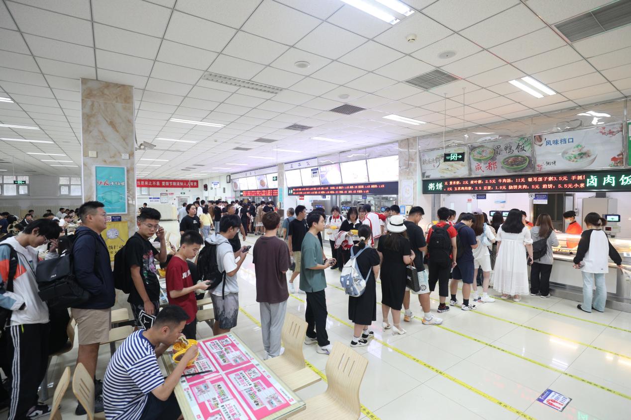 课堂上,师生全情投入,老师的讲解细致深入,同学们听课聚精会神;操场上,同学们挥汗如雨,欢呼雀跃,享受着新学期第一天运动多巴胺带来的快乐;食堂里,饭菜的香气扑鼻而来,同学们三五成群围坐在一起品味着可口的饭菜,熟悉的味道溢满心间。