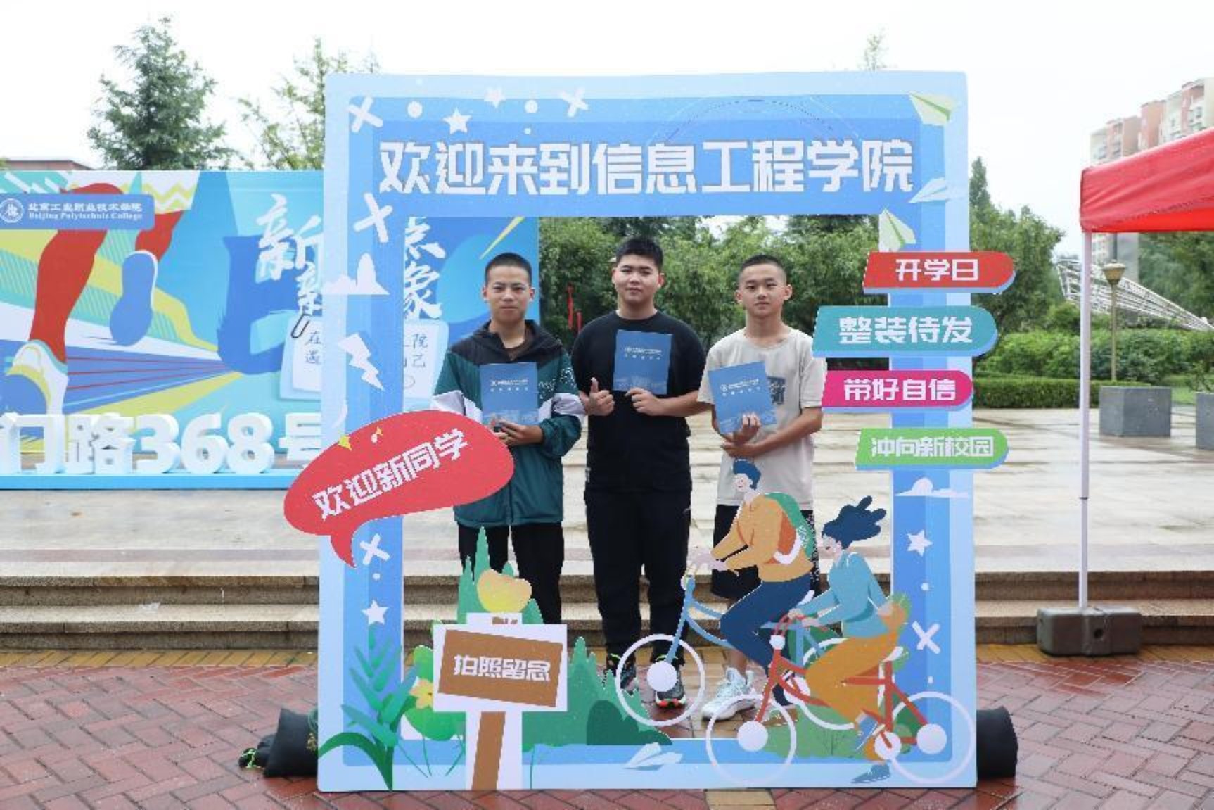校园中,新生在各有特色的合影板或校园标志前拍照打卡,留下步入北工院最初的光影记忆。从今天起,我们都有一个共同的名字——北工院人!