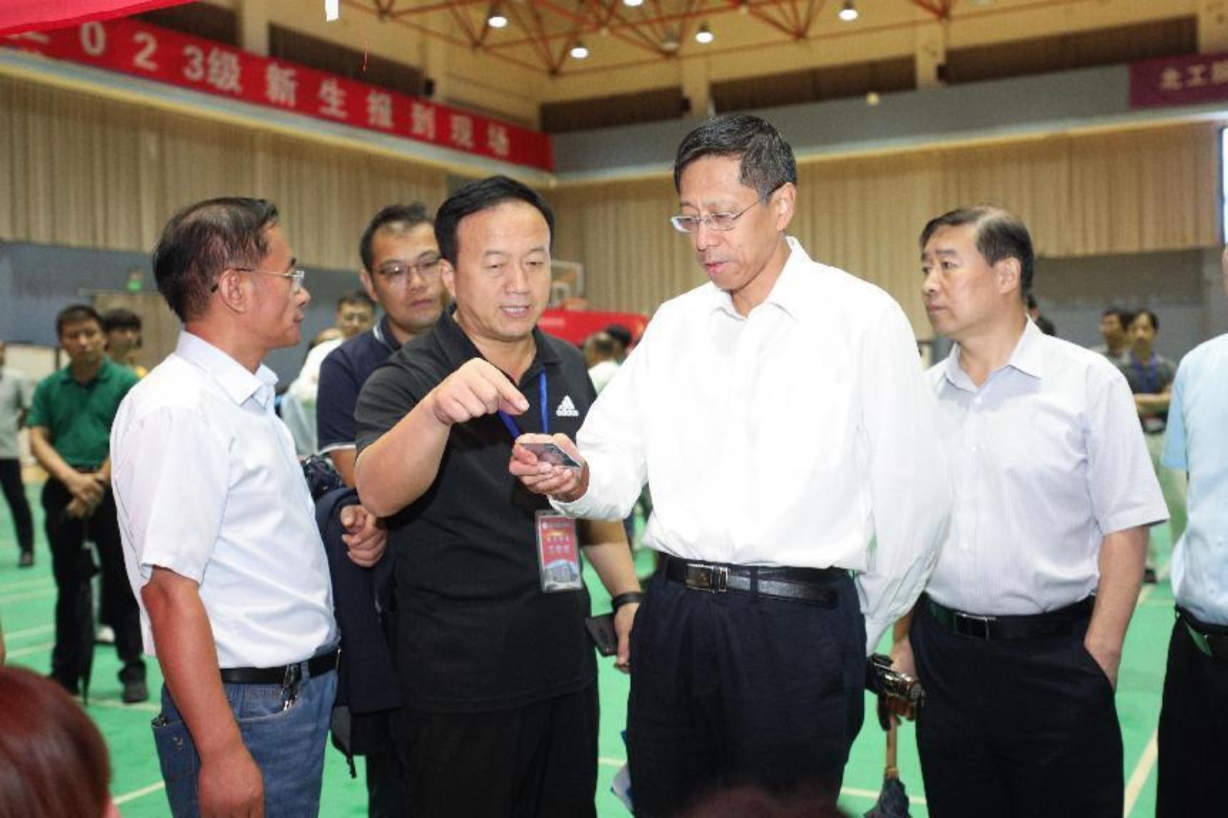 9月9日上午,党委书记高喜军率队来到迎新现场了解今年的招生情况和报到进展,并与新生和家长们亲切交谈、合影留念,向他们表示热烈欢迎,并慰问了现场的工作人员与志愿者。在学生宿舍、食堂等地,高喜军书记详细询问新生报到流程是否顺利、关心同学们的入住体验、对校园的印象,鼓励大家规划好校园生活,望同学们传承工匠精神,成长为国家的栋梁之才。