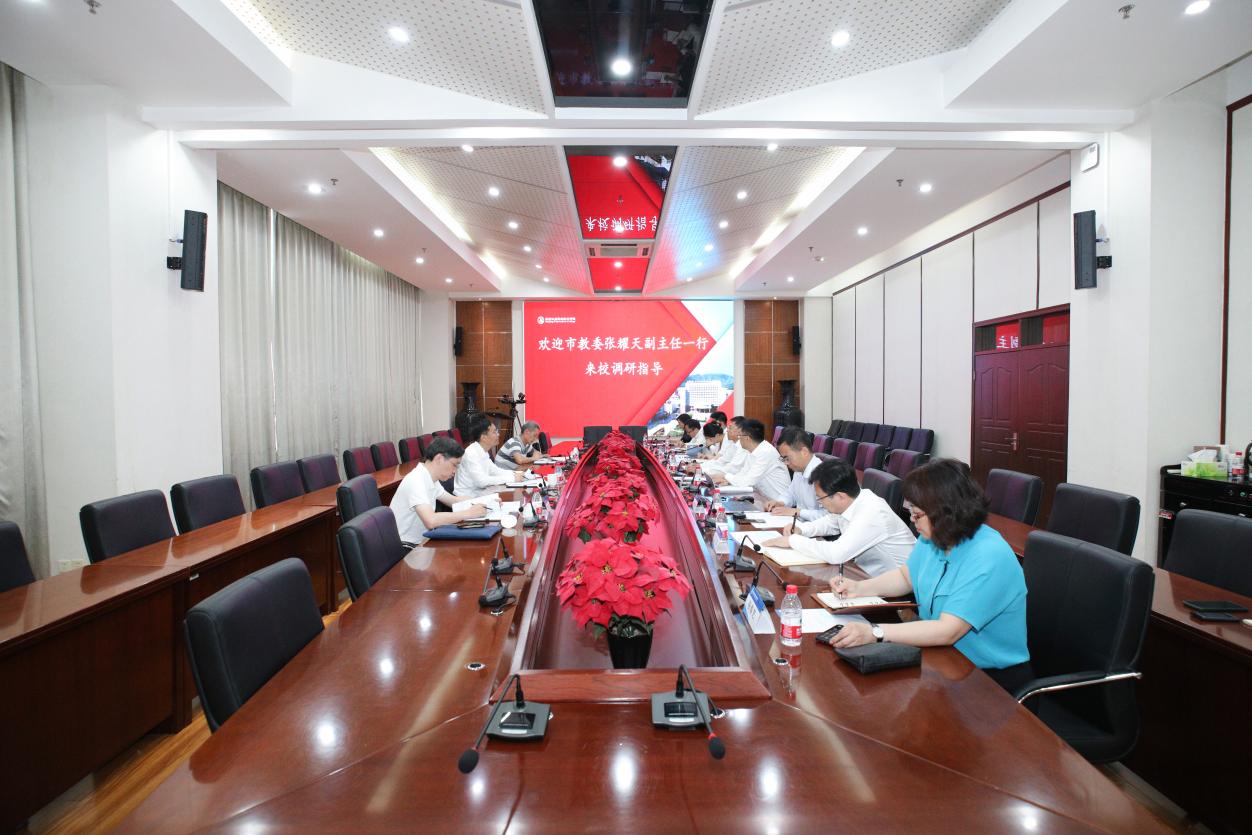 6月5日,市委教育工委委员、市教委副主任张耀天,市教委职成处处长张树刚,市教委科学技术与研究生工作处副处长李勇一行到华体会网页版调研。校党委书记高喜军,党委副书记、院长柳长安,党委常委、副院长沈莹,党委常委、副院长史运涛参加调研。