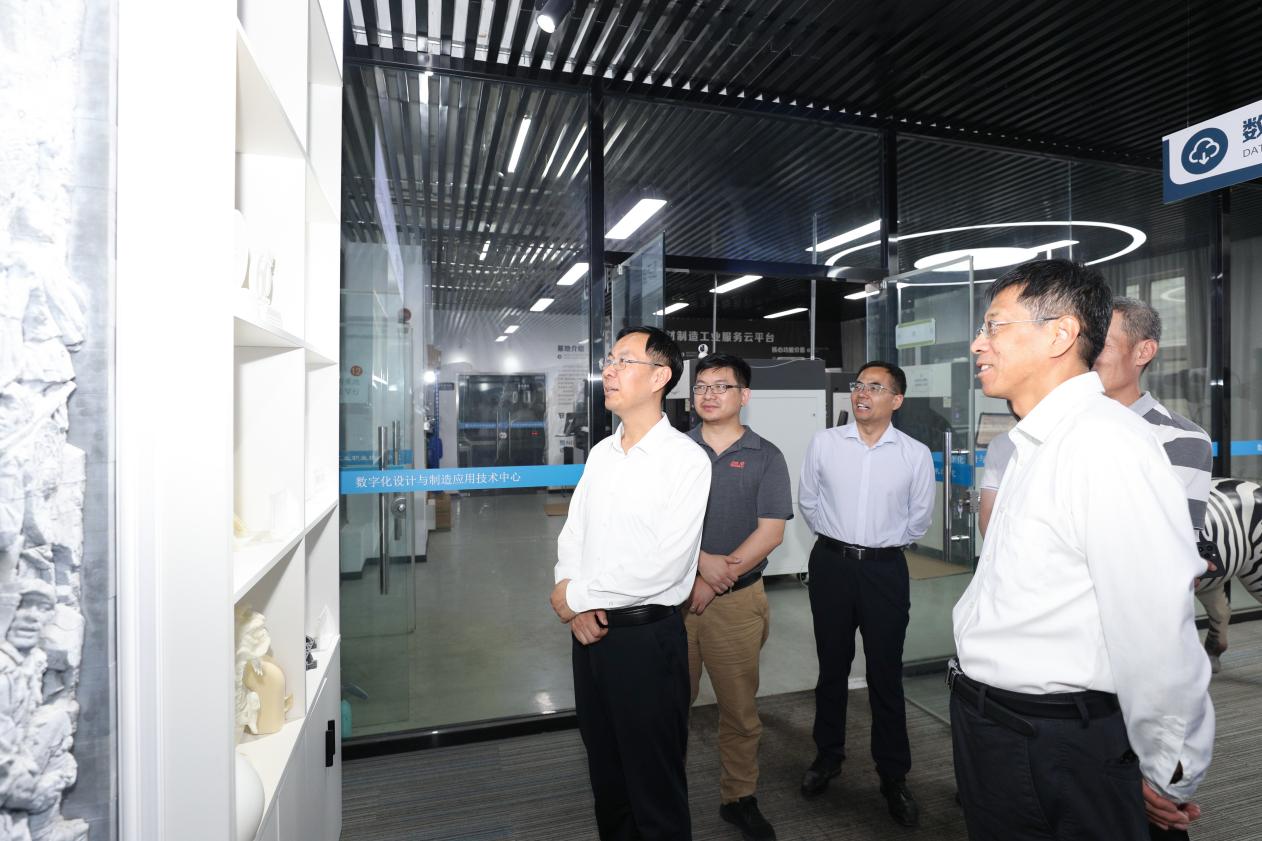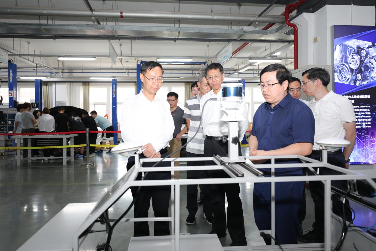 在汽车实训基地和机器人实训基地张耀天一行听取该基地开展校企合作的汇报,了解学生技能大赛训练,技术服务等开展情况。在数字化设计技术应用中心,张耀天一行听取了逆向工程、工业设计、精度检测、精密制造和虚拟现实等应用技术的介绍。在机器人实训基地,张耀天一行观摩了智能机器人的组装和调试,询问了学生在该中心的学习情况。