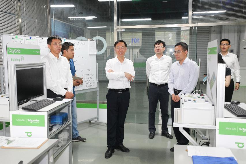 在座谈会前,张耀天一行参观了我校中法能效管理应用人才培养和研究中心、汽车实训基地、数字化设计技术应用中心,全面了解学生实训教学、校企合作、全国技能大赛准备情况。在中法能效管理应用人才培养和研究中心,张耀天一行仔细询问了先进能效管理技术、设备,行业领先应用场景。他指出,要紧盯产业岗位特性与需求,共研人才培养方案,真正实现校企双主体育人。