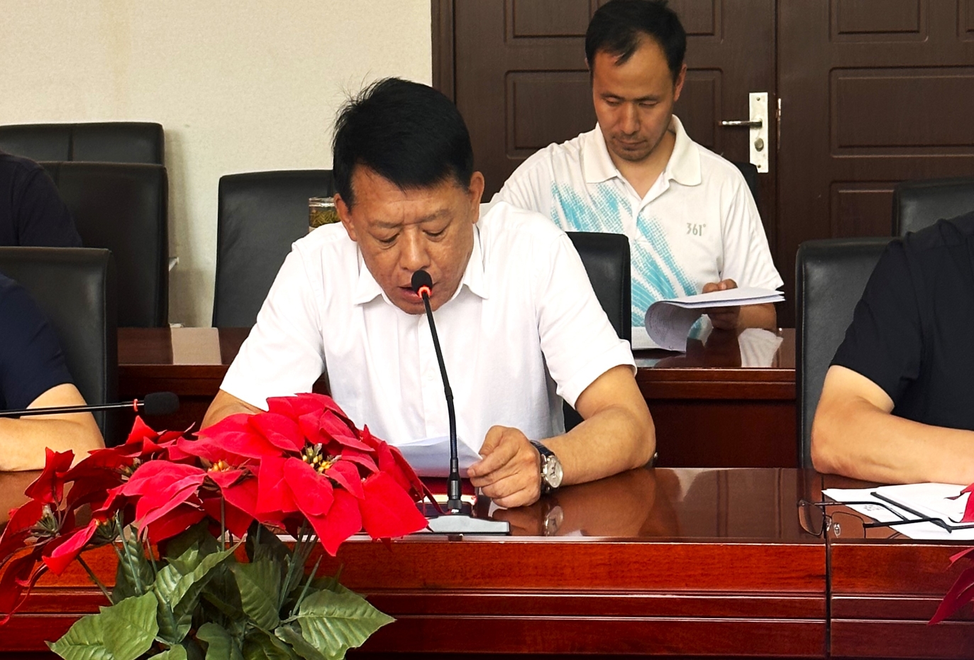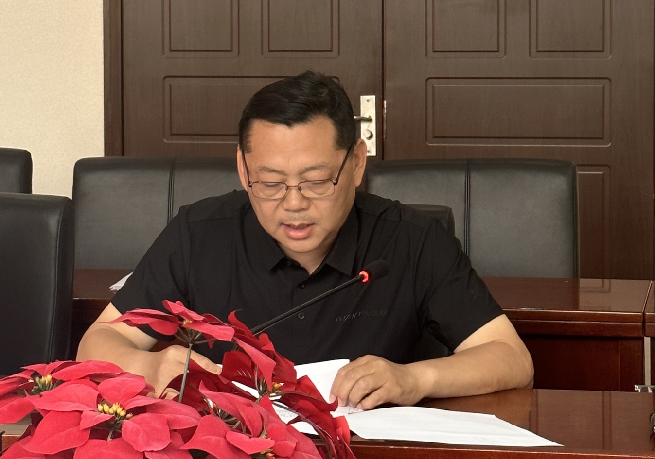 后勤基建处处长郑瑞收宣读上级部门通知