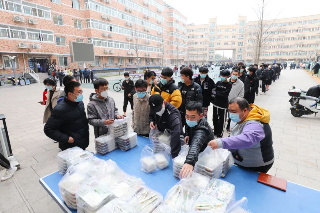配发餐食、组织核酸、物资发放......辅导员、班主任、志愿者们第一时间入住公寓,确保每层配备一名辅导员,与同学们一同吃住,24小时值班值守,安慰鼓励同学们维护校内防疫秩序。