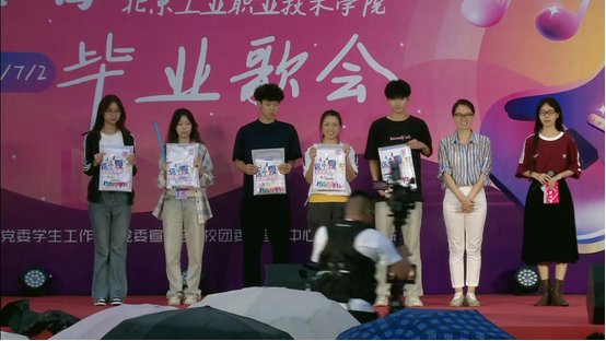 校党委常委、副院长沈莹抽取现场5名幸运观众,为大家颁发北工院“落日毕业歌会”周边,并送上温情毕业祝福。