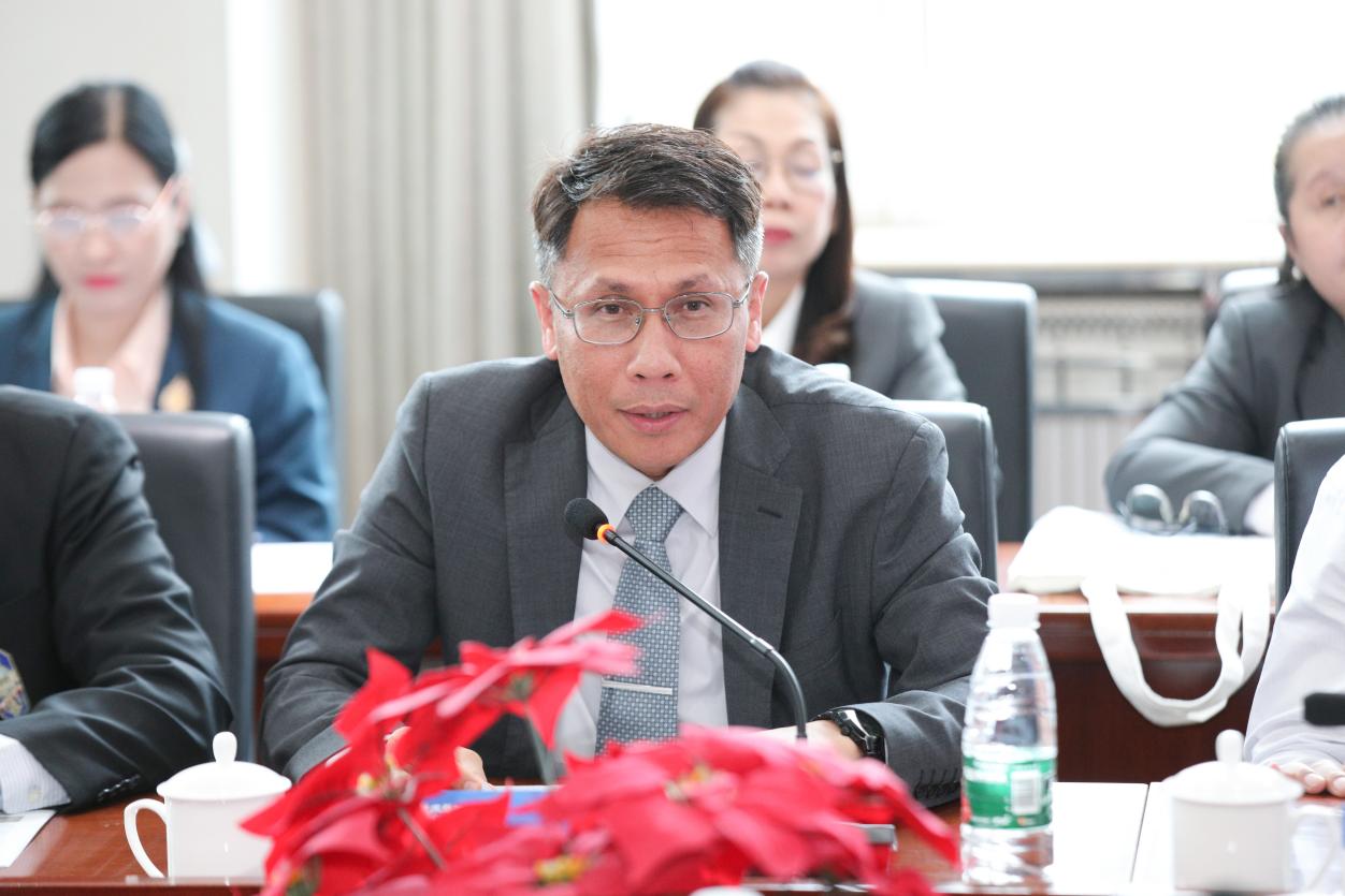 泰国教育部副常任秘书长塔努·昆德贾发表了致辞。塔努秘书长对华体会网页版的热情接待表示了衷心的感谢。他提到,泰方非常重视和支持职业教育,希望通过与中国职业教育院校的交流,吸收中国先进的教育教学经验,促进泰国职业教育的发展,期待未来泰国能有更多师生来到中国交流学习。