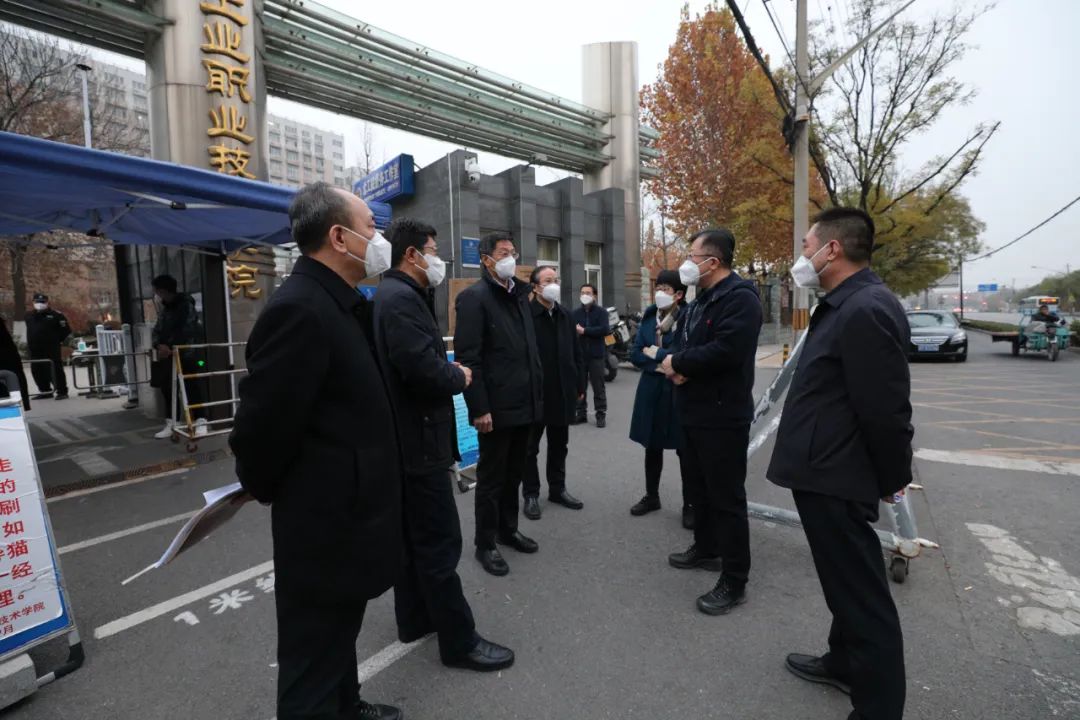 11月18日,北京市委常委、统战部部长游钧,北京市石景山区委书记常卫,北京市石景山区委常委、副书记、政法委书记刘海涛,石景山区教委和五里坨街道负责人到我校调研指导华体会网页版疫情防控相关工作。