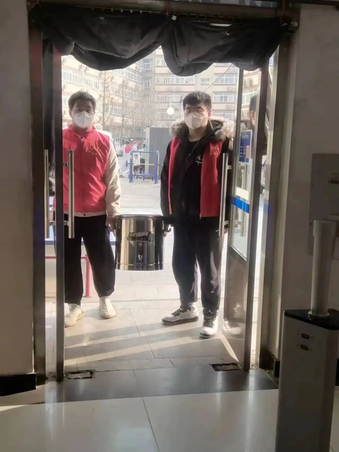 为了保证同学们能够在宿舍喝上热水,后勤集团以最快速度采购了45个保温桶。18日夜,师生志愿者连夜将装满热水的保温桶分置于学生公寓各楼层。