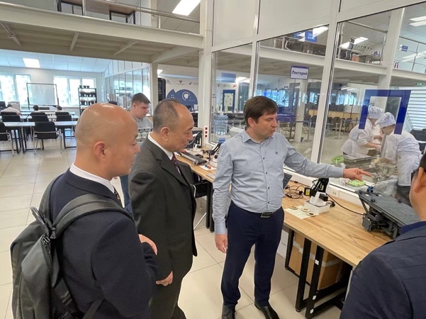 团组前往莫斯科州能源学院,与该院院长进行交流座谈并参观了实训基地及教室,了解校企合作领域开展的育训融合成果。